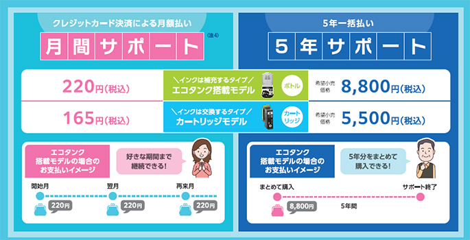 5年サポート:対象モデルにより希望小売価格8,800円(税込)または5,500円(税込)商品購入時に一括でお支払い、5年間のサポートとなります。