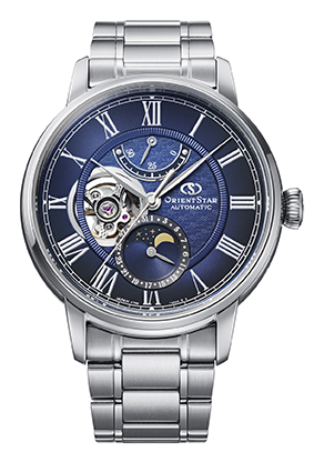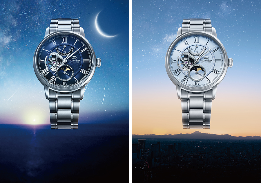 オリエントスターのアイコンであるパワーリザーブ表示、月齢と指針式の日付カレンダー表示、機械式ムーブメントの一部を見せるセミスケルトンの3つを組み合わせた「メカニカルムーンフェイズ」は、2017年の誕生以来、その独創的なデザインと機能が注目を浴び、オリエントスターの代表作として世界の時計愛好家に親しまれてきました。また、デジタル化が進む社会の中でゆったりとした時間を提供する時計というコンセプトも機械式時計の価値を大いに高めました。