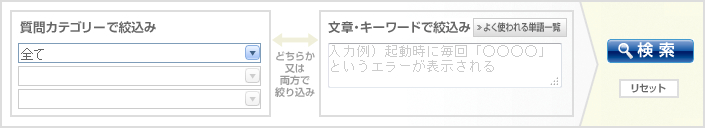 質問カテゴリー・文章・キーワードでの絞り込みができます。