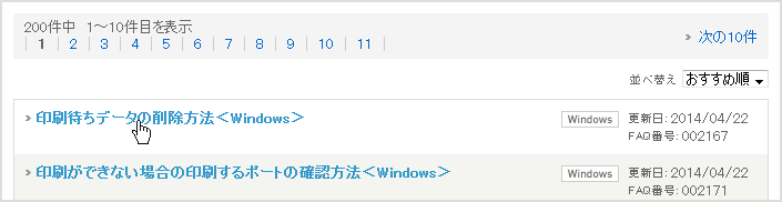 選択した製品のFAQが表示されます。使用しているOSを選択すると絞込みできます。