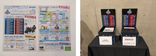 「来場者の皆様が環境について考えるきっかけになれば」という思いで、会場ではエプソンの乾式オフィス製紙機「PaperLab(ペーパーラボ)」で再生した紙を使用したパンフレットを配布しました。PaperLabは、使い終わった紙を、ほとんど水を使わずに(注2)その場で新たな紙に生まれ変わらせることができます。終演後、パンフレットを持ち帰らない方向けに回収ボックスも設置し、回収したパンフレットはPaperLabで再生することで、紙の資源循環を実現しています。