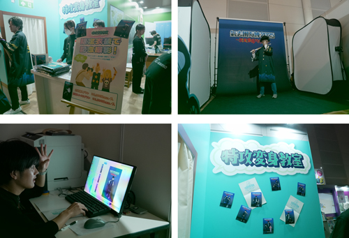 学校生活をテーマにした「推し活応援部」ブースでは、「特攻変身教室」「図工室」「美術室」など、教室をイメージしたコーナーを用意しました。どのコーナーでのサービスも、デザインはお客様自身で行い、ご自身にとって唯一無二のグッズを制作していただくことで、"推しとの思い出を形に"することを後押ししました。