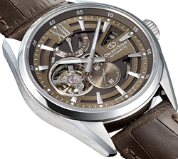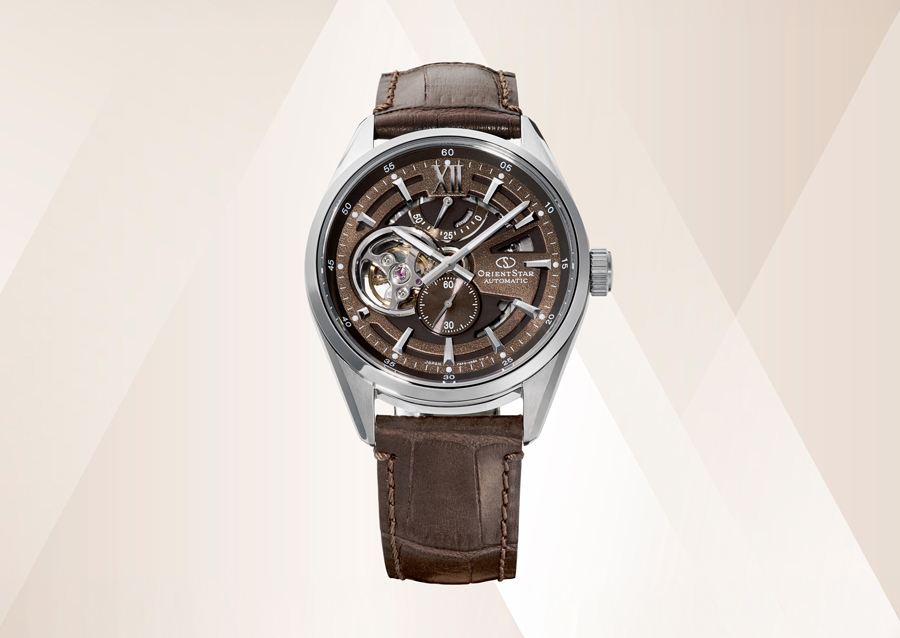 オリエントスターの『モダンスケルトン』は、2014年の誕生以来、国内外で人気を博すロングセラーモデルです。最新モデルは、長年親しまれてきた文字板デザインをリニューアル。特長的なオープンワークの面積を増やし、よりスケルトン的な要素を増した文字板へと生まれ変わりました。インデックスに沿って文字板のほぼ全周に及ぶレール状のオープンワークや、パワーリザーブ表示周辺のオープンワークは今回が初めてです。またオープンワークとともに印象的なのは、以前より大きくなり格段に見やすくなった6時位置のスモールセコンドです。これらのアップデートによって『モダンスケルトン』の個性が一段と強調されています。