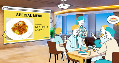 「ミセメディア」は飲食店内にプロジェクターなどの大型ディスプレイを設置し、大画面の映像によって視覚に訴え、接客や提供メニューまで展開可能な来店客の五感に訴える体験型のメディアです。昨今、情報が取捨選択されるフィルターバブル現象により新規顧客への情報伝達が課題となっています。また、リアルなロケーションを活かした販促活動が注目を集める一方で、施策間の明確な差別化が困難になりつつあります。こうした企業・自治体がプロモーションを実施する上での課題を解決するために、ぐるなびとエプソンが共同で「ミセメディア」を開発し、2025年1月よりサービスを提供しています。