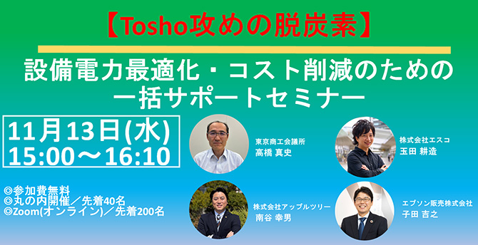 設備電力最適化・コスト削減について各社のサービスや事例を交えながらセミナー形式にてご紹介します。
