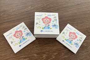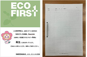 また、同じ再生紙を活用した「オリジナルメモ帳」も用意しており、環境への配慮と実用性を兼ね備えたアイテムとして、お客様にも配布しています。