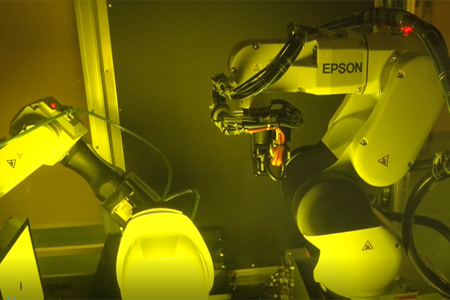 エプソンは、インクジェット立体物印刷装置を用い、産業用ヘルメットの製造を手掛けるミドリ電機製造株式会社様が抱えていた課題を解決するための共同開発プロジェクトをスタート。1年の開発期間を経て、ロゴや文字データを入力するだけでヘルメットに自動で印刷される装置が導入されました。コンパクト、高耐久性、高速吐出の特長をもつインクジェットヘッドの特性を活用したこの装置により、印刷の工数が削減され、従来は4人で分担していた作業が、2人の作業で可能になりました。また、所要時間が短縮されただけでなく、職人の習熟度に頼ることなく製品品質を安定させることに成功しました。さらに、課題であった有機溶剤の使用量も低減、版の制作費用も不要になるなど、製造工程を大幅に効率化し、環境負荷まで抑えるソリューションとなりました。
