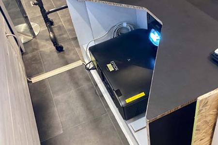 店舗演出には、液晶プロジェクターを導入し、リアルな臨場感を演出すると同時に、プロジェクターを自然に隠す専用の設置台も製作。FSC(森林管理協議会)認証を取得した段ボールベースに再剥離可能な出力紙をあわせることで、繰り返しの利用が可能となりました。計4回にわたって行った実証実験では約20kgの廃棄物を削減、従来と比べて約14%の重量を削減することができました。今後は、この結果をさらに発展させ、お客様との共創から省資源・資源循環価値を実現するサステナブルデコレーションの取り組みをすすめてまいります。