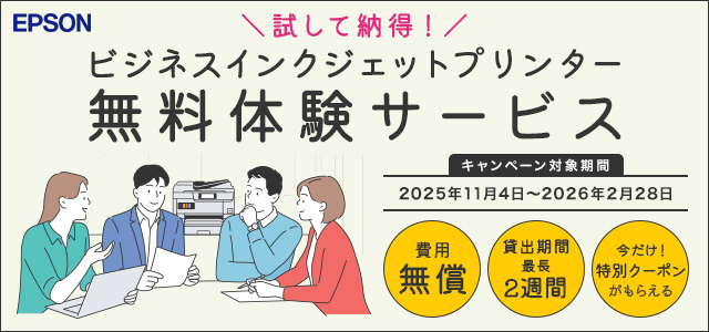 ビジネス用途でプリンター/複合機の導入をご検討のお客様に対して、ビジネスインクジェットプリンターの使い心地をご体感いただくことを目的としたサービスです。