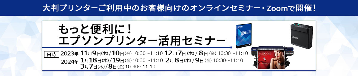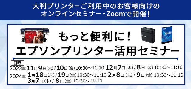 エプソンのエコソルベントインク搭載プリンタ―をお使いのお客様向けのオンラインセミナーを実施致します。