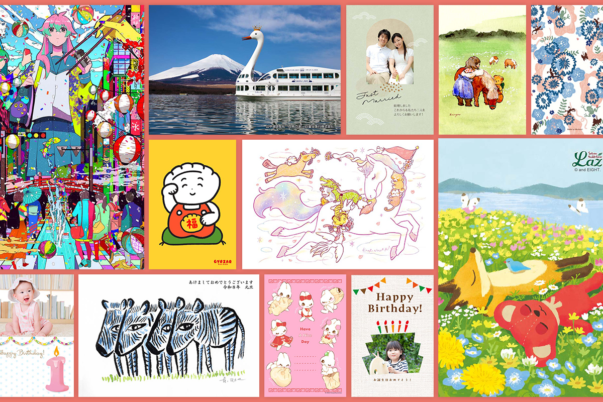 年中使えるデザインもたくさん!有名クリエイター・企業とコラボしたポストカードや、使いやすい挨拶状のデザインを大幅追加しました。