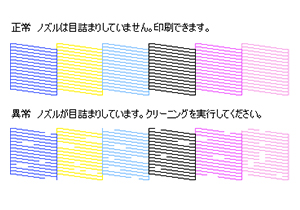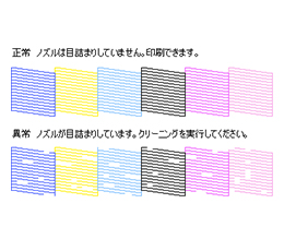 印刷結果がおかしい場合のノズルチェック・ヘッドクリーニングの手順についてはこちら