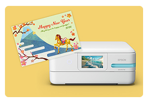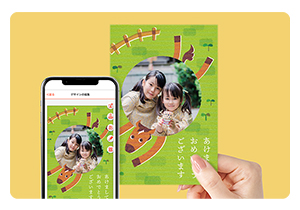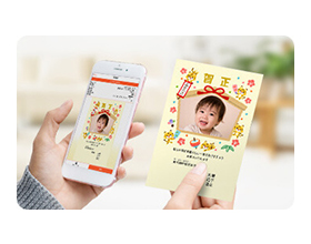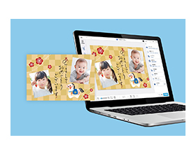 年賀状作成アプリケーションを立ち上げ、作成したデザインを表示させます。