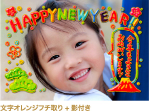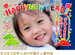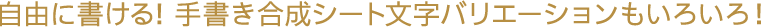 色鉛筆やマーカー、いろんな色で自由に書くことができます。 手書き合成シートの「文字飾り」にチェックを入れれば、 文字にフチを入れたり、モコモコ文字に加工することもできます。
