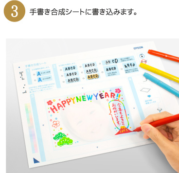 カラリオの「手書き合成シート印刷」なら、手書きのメッセージをプラスして、オリジナルのハガキをカンタンに作ることができます。 両親へ、親しい友人へ、会社の上司の方へーー。 それぞれに違うメッセージを送ることができます。
