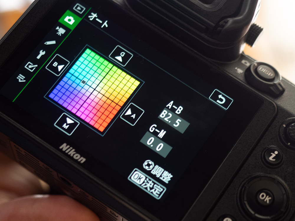 ホワイトバランスを「オート」にセットしてから、わずかにブルーが強くなるように微調整。これで、フレッシュな色彩で花が写せるようになる