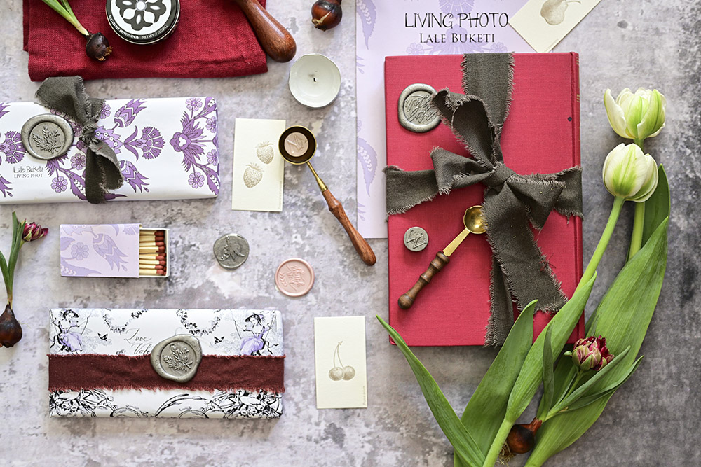 撮影も大詰め。「そろそろ潮時では?」と思ったのですが、今道さんは第3のセットを用意しはじめました。素早い手つきで、アンティークの本やコイン、マッチ、シーリングスタンプなどなどを次々と並べていきます。