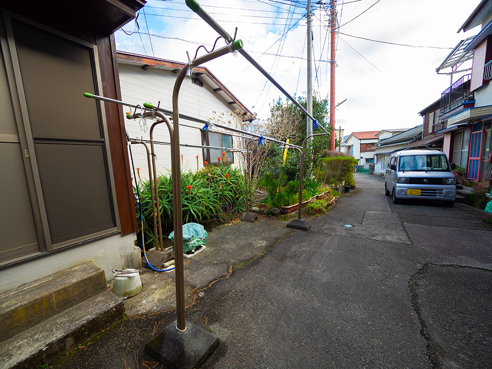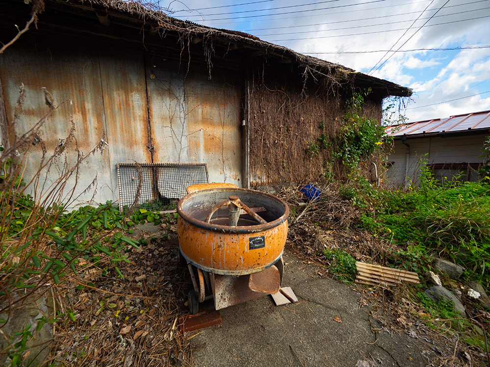 漁村の路地で河野さんが選ぶ撮影ポイントは、住人の目には「なんでこんなところで撮るの?」と疑問を抱きそうな場所です。上に掲載している写真は道端の物干し竿の横だし、下の写真は寂れた小屋の前。いうなれば、自宅の前や庭先で作品を撮るようなものです。