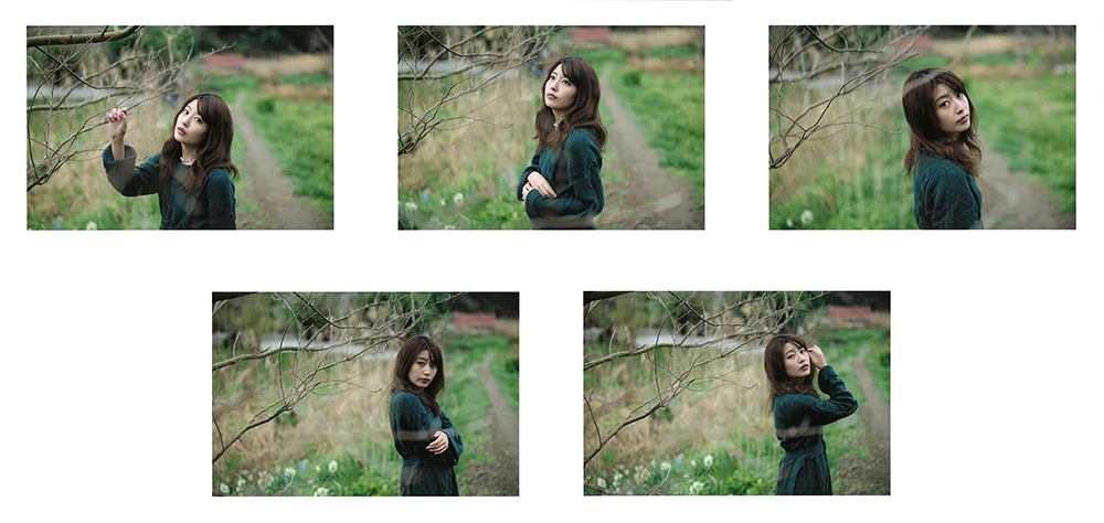 それは、枯れ枝の下で撮影した写真です。実はこのシーン、あぜ道を活かした写真を撮るべく大瀧さんの要望で撮影に臨んだポイントです。そんな経緯があるだけに、大瀧さんとしては“研究”せずにはいられなかったのでしょう。