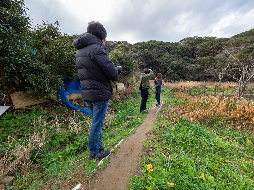 河野:あぜ道を入れるか、入れないか。レンズに接するくらい木の枝に近づいて、前ボケにしながら撮ってるんです。今のカットは道を入れておこう、このカットは外しておこうって。大瀧さんが撮っている間にフィールドを見ておいて、道を入れてみたらどうかな、いや待てよ、外すとどうだろうと。これは両方撮っておいて、あとで選べばいいんだねみたいな。