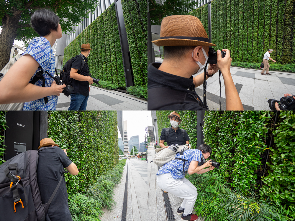 被写体を見付けると、周囲を観察して、いろいろなアングルで撮影を試みる。作品を撮るというよりは、小向さんに「撮り方」を見せている印象。撮影は始まったばかりで、まだまだウォーミングアップといったところ。