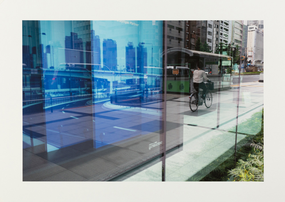 熊切: ディスプレイの中に青いポスターがあって、右側が実像というか、反射の部分ですよね。うまくポスターの絵の角度と、街並みが揃うような位置を見付けて写す、というのも結構キモだったりします。中途半端に角度がズレているとグチャグチャになるけど、つながっている感じで構図を作れば、どこからどこまでが絵で、どこから実像なのか分からない、みたいな。そんな感じの写真を撮りました。