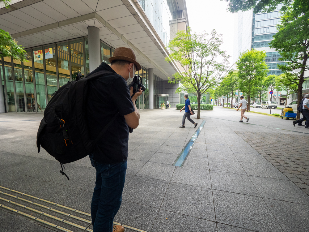 今回、街スナップの舞台となったのは東京駅周辺。空はあいにくの曇天。集合時間の少し前には小雨がパラつく、スナップ写真を撮るにはよい状況とはいえなそうな天気です。参加者の小向さんも、「曇りの日ってどうやって撮ればよいのか」と不安を滲ませています。