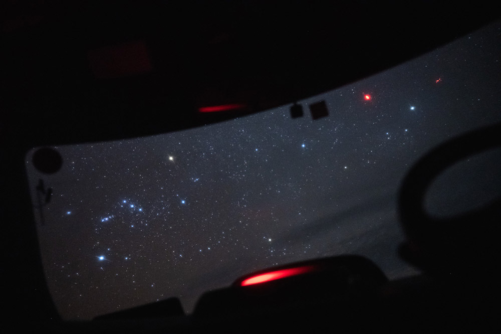 そうは言っても、星座やその位置を熟知している茂手木さんや西田さんと違って、満天の夜空を眺めてもどこにどんな星座があるか分かりません。そういえば、天体観測用の機材で、星座の位置を示した円盤状の「星座盤」というものがあったような気がするので聞いてみると、今はパソコンやPCでシミュレーションできる以下のようなアプリケーションを使うそうです。なるほどこれなら向いている方向の夜空とすぐ見較べられるので、とても便利そうです。