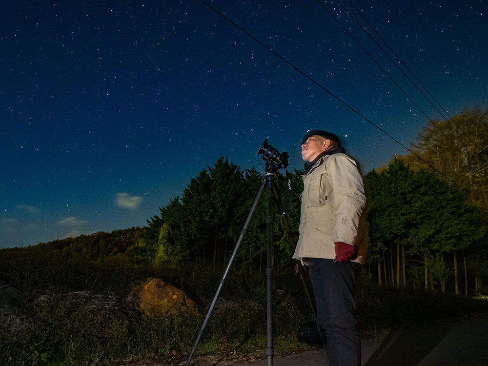 星景撮影では、星座が想定する位置に来るまで他の条件が揃っても撮ることができません。地球も刻々と動いていますので、シャッターチャンスもそんなには長くはなく、撮影現場は冬の寒さとも相まってピンと張り詰めた緊張感が漂います