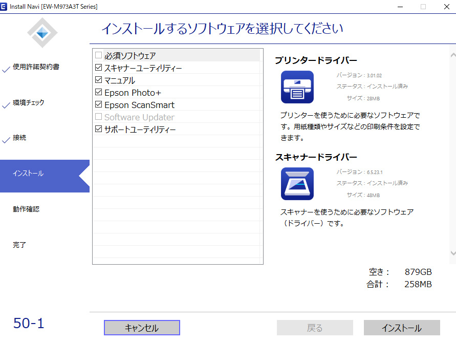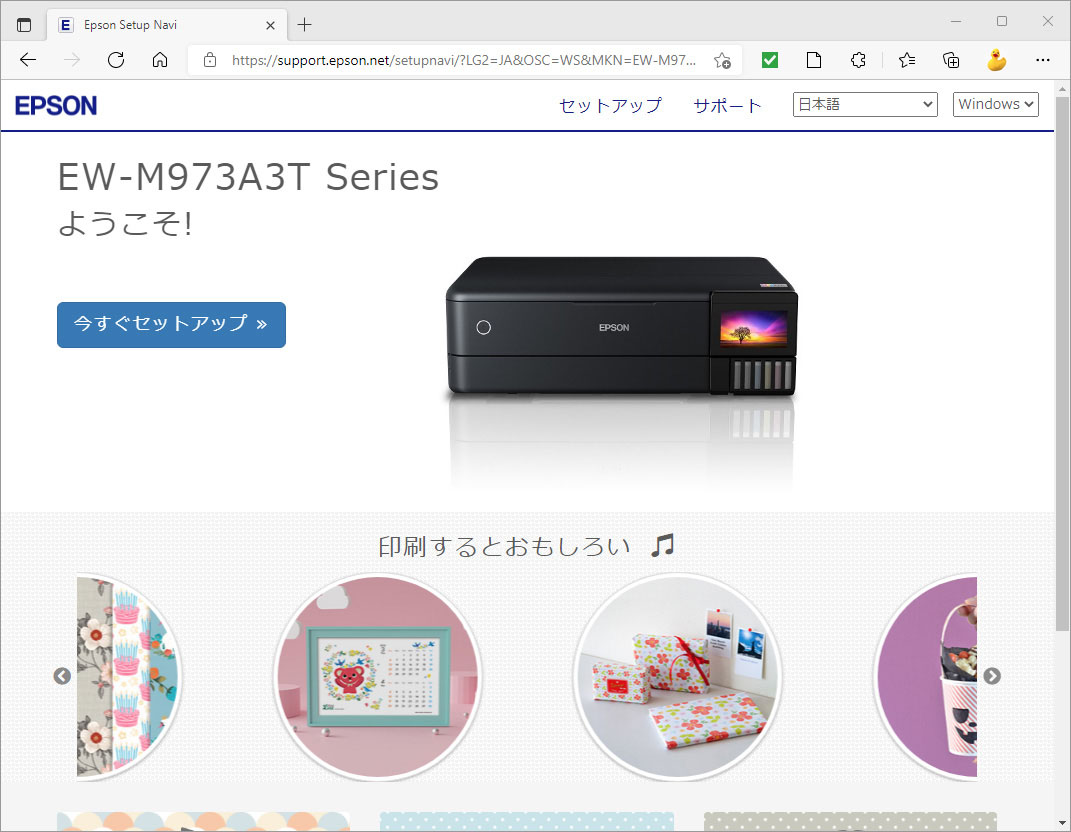 エプソンなら「Setup Navi」にアクセスし、専用ソフトをダウンロードすれば、PCとの接続や必要なソフトのインストールが簡単に行えるので、心配はいりません。