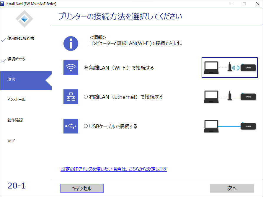以下、EW-M973A3Tを例に、セットアップの大まかな流れを紹介します。
