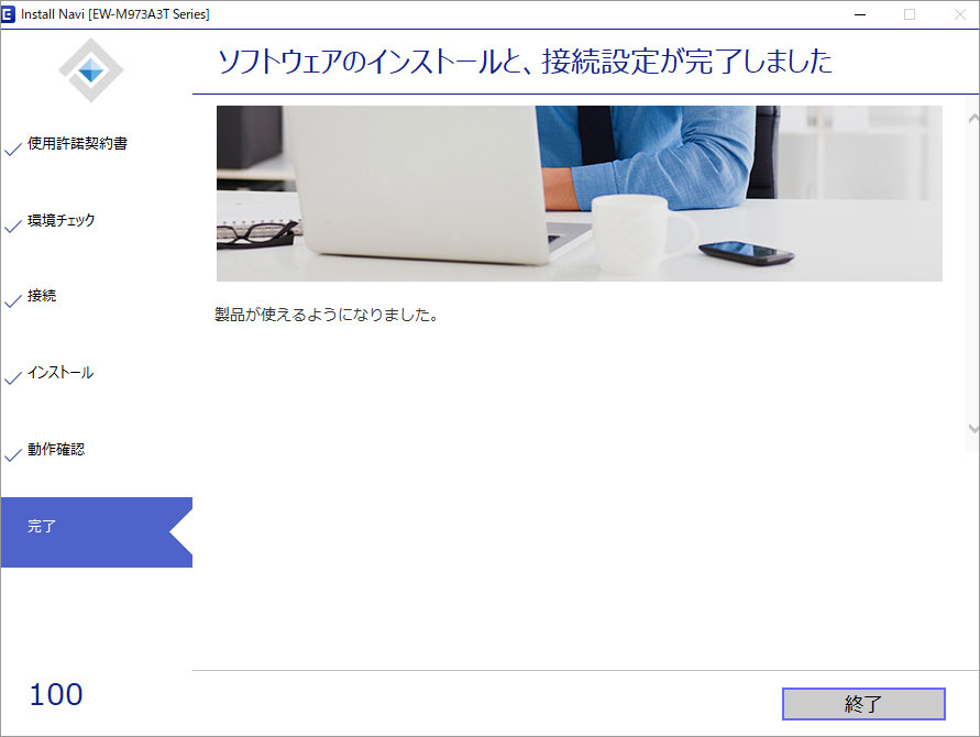 すべての工程が終わるとこの画面が表示されるので「終了」ボタンを押す。