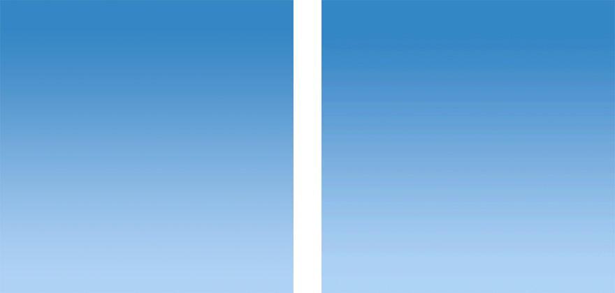 トーンジャンプとは、グラデーションの滑らかさが失われ途切れ途切れになってしまう現象のこと。左の図はトーンジャンプが見られずグラデーションが滑らか。一方、右の図ではトーンジャンプが出てグラデーションが途切れているのがわかる。
