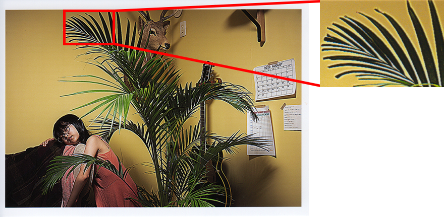 プリントの細部がハッキリ見えないというのは、「画素数が足りない」ことによる不鮮明な描写が原因です。デジタルカメラだと「○○万画素の撮像素子」という言い方をします。数字が大きいほどより高精細な写真を撮ることができます。プリントも同じで、写真データの画素数が多いほど、より高精細なプリントが得られます。高精細なプリントというのは画像の密度が高い状態と考えてください。