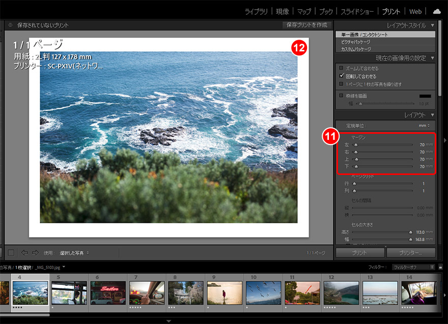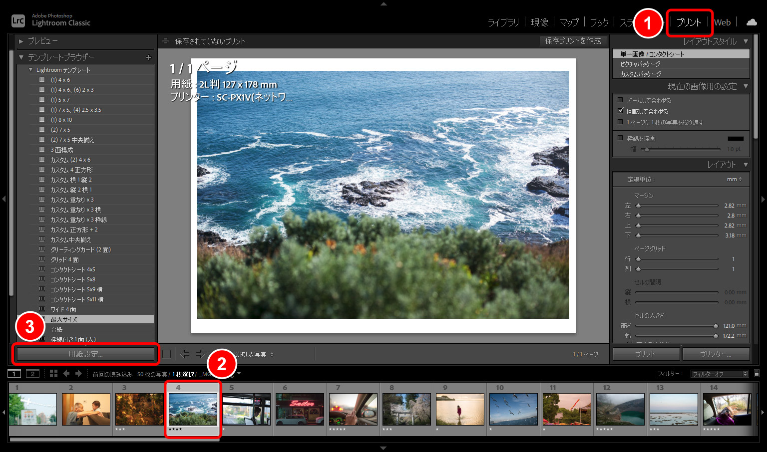 1Adobe® Photoshop® Lightroom® Classicを起動し、「プリント」モジュールに切り替えます。