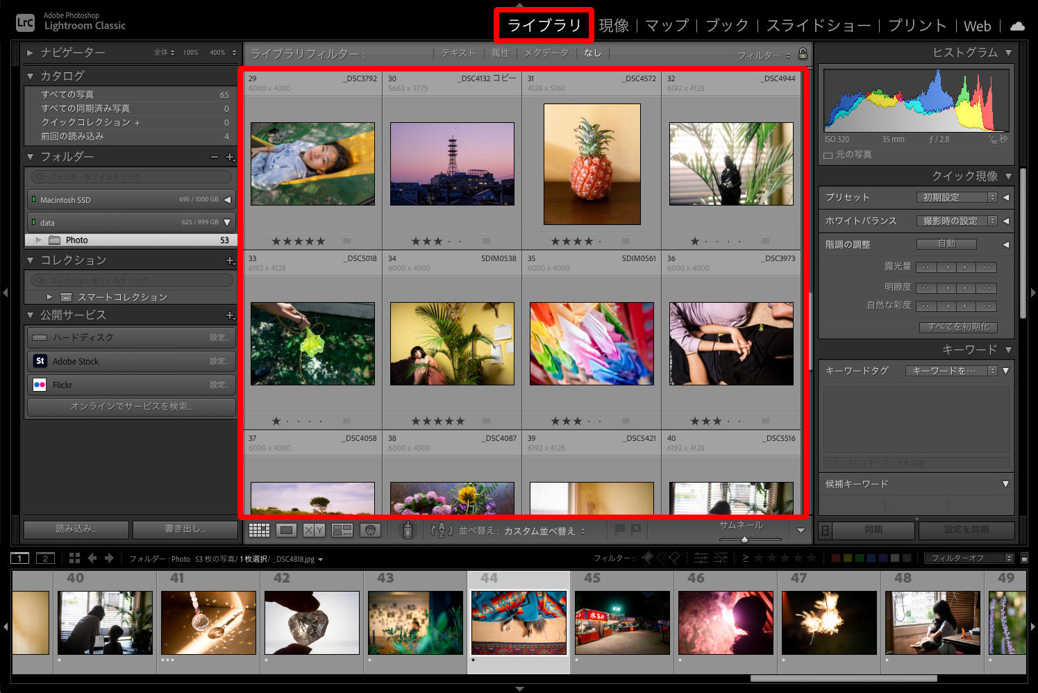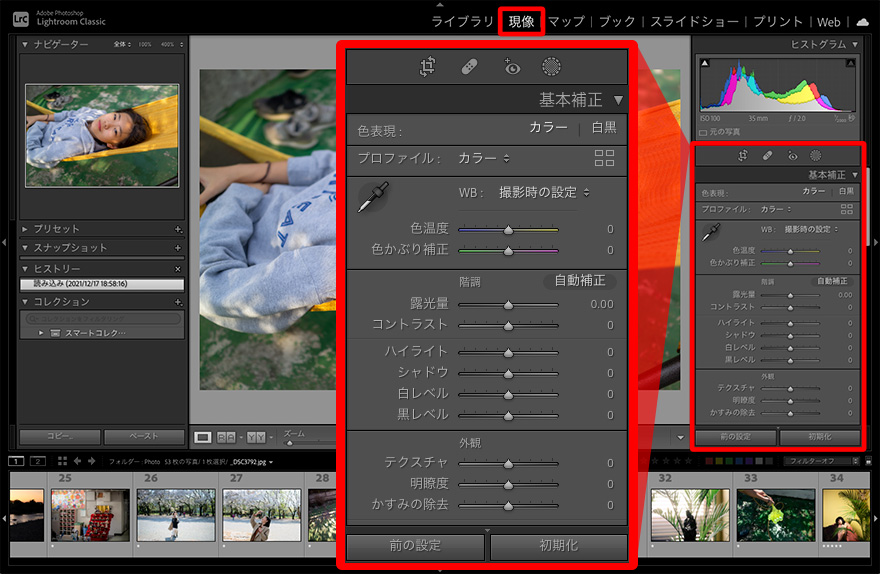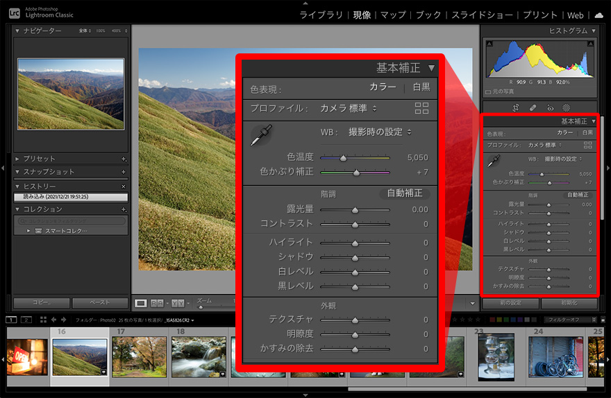 (注)アドビ社より許可を得て転載しているアドビ製品(Lightroom® Classic)のスクリーンショットを含みます。