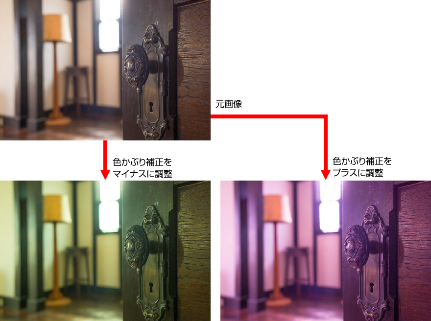 - 「色かぶり補正」の調整効果