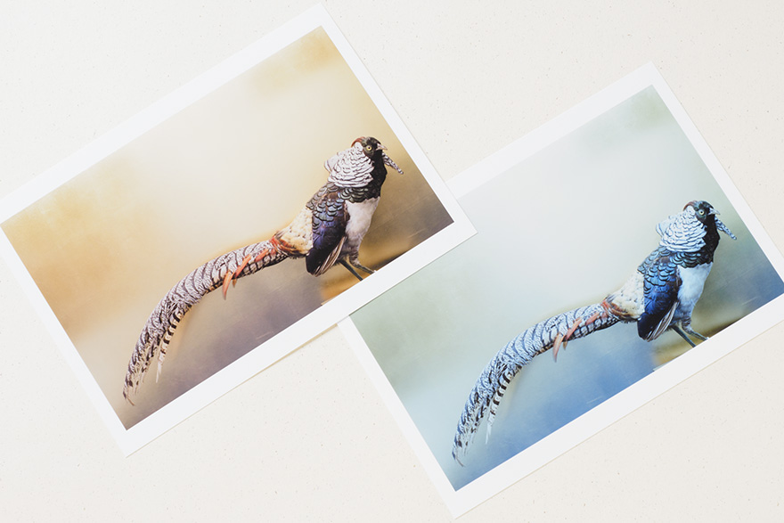 また別の条件として、プリントの色がイメージと異なる原因に挙げられるのは、照明や環境光がプリントを評価するのに適していない場合です。例えば印刷学会では、印刷物は色温度が5,000K程度の照明の下で見るのが望ましいとしており、写真プリントもそれになぞることが多いようです。実際にプリンターメーカーやカメラメーカーもその色温度を基準に色づくりを行っています。照明器具の色温度が低いとプリントは赤っぽく見え、逆に色温度が高いとプリントは青っぽく見えます。Lesson 3でも取り上げますが、プリントの色を評価するには色温度が約5,000K程度の環境を用意することが標準的であると言えます。