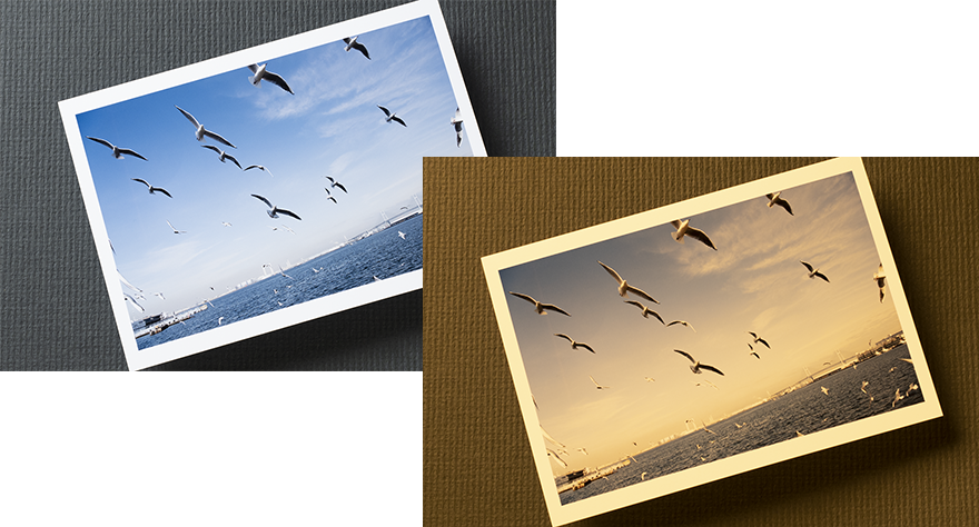 - 左のようなプリントを作るイメージで調整しても、モニターの色や明るさがずれた状態で写真を調整したり、プリント設定を間違えたりすると、本来とは異なる色や明るさでプリントされてしまいます。イメージ通りのプリントを得るには、正しい設定を行い、モニターや環境光などの不安定な要素を取り除くことが大事です。