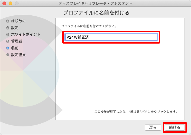 6作成するICCプロファイルの名前を入力し「続ける」をクリックします。