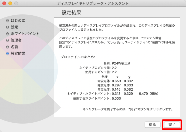 8ICCプロファイルが作成され、その情報が表示されます。「完了」をクリックして終了します。