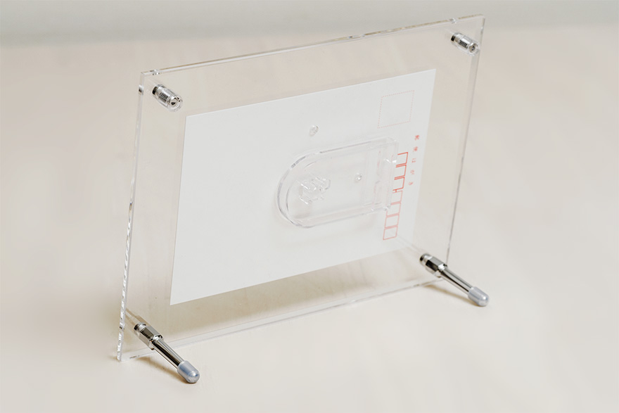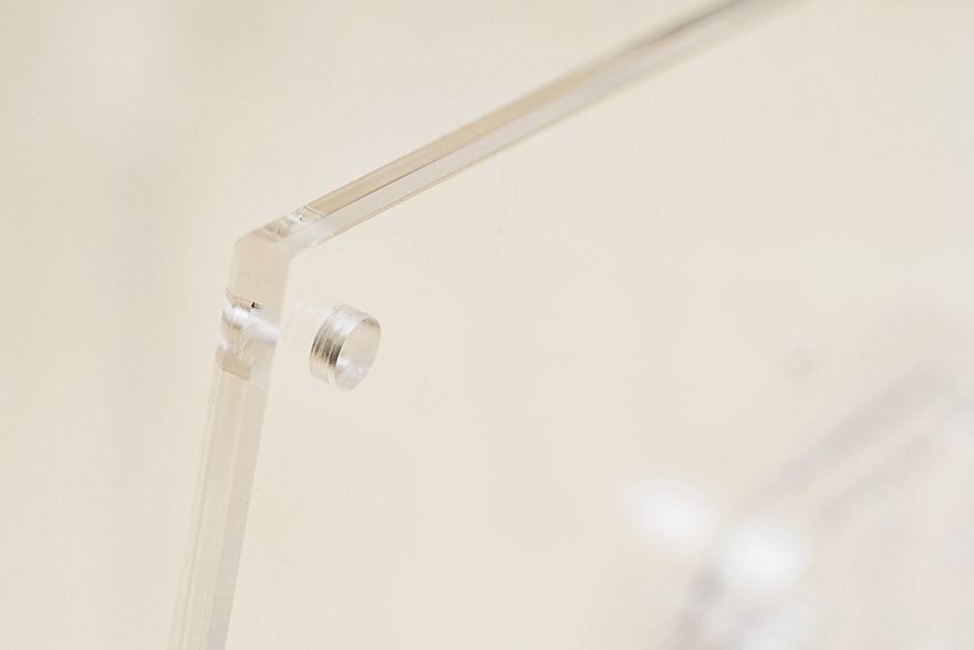 7位置が決まったら、プリントがずれないようにもう片方のアクリル板を合わせ、外したネジを止めれば完成です。