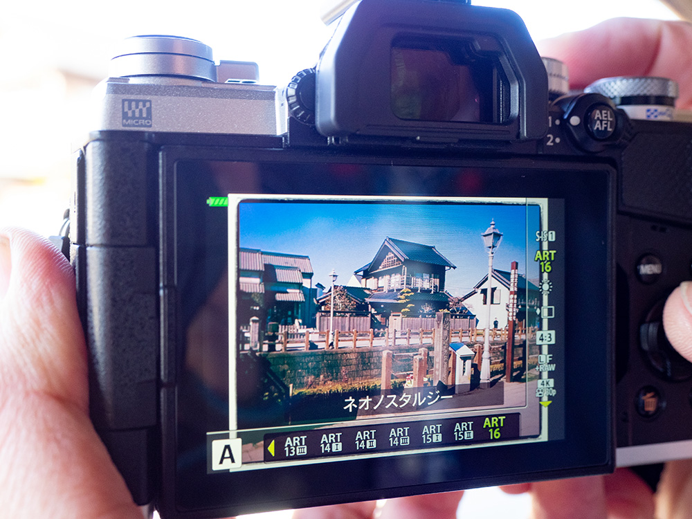 清水さんにカメラの設定を見せてもらうと、撮影モードは絞り優先の「Aモード」を基本として、動きもののときはシャッター速度優先の「Sモード」にセットしていました。仕上がり設定は「ナチュラル」。そして前述のとおり、「アートフィルター」は「ネオノスタルジー」にセットしたまま。ハイコントラストで色濃くなる効果を見越して、露出の補正や光の向きを考えているとのことです。