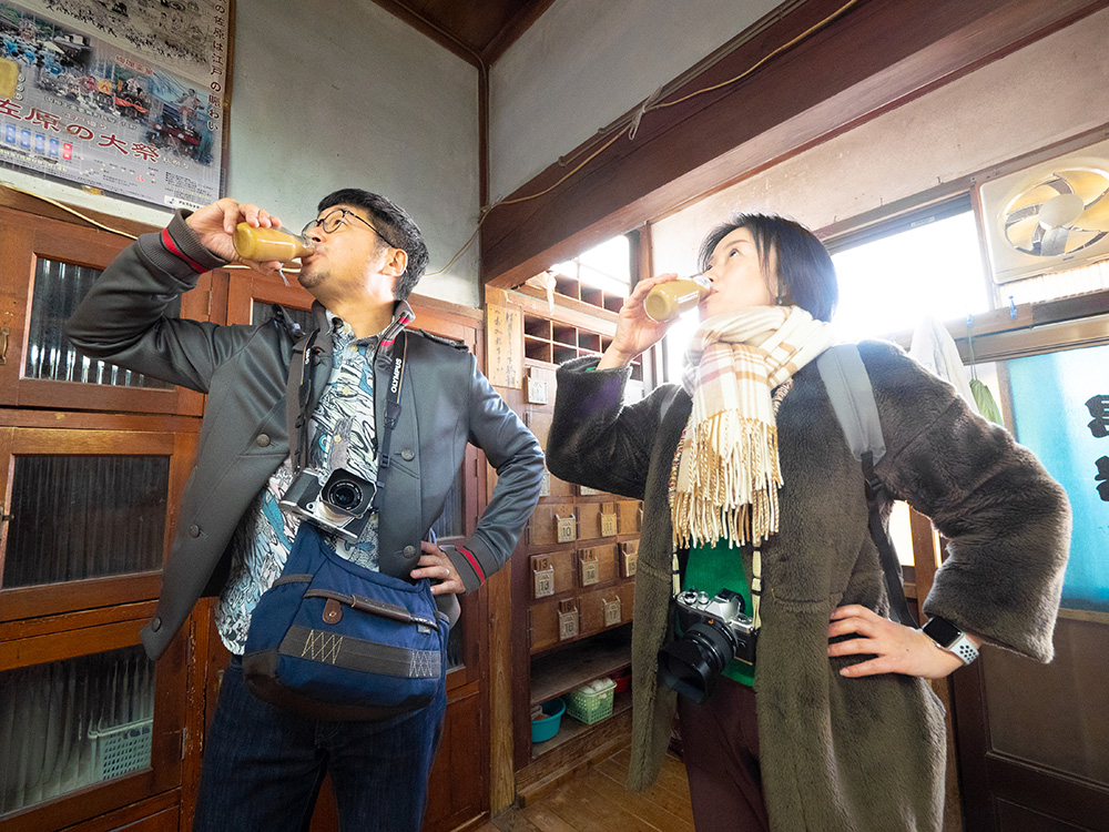 撮影もひと段落したためか、「風呂に入りたい」と主張する清水さん。でも、まだ取材は半分が終わった段階。コーヒー牛乳で一息ついて、次なる作業に向け意欲を充填してもらう