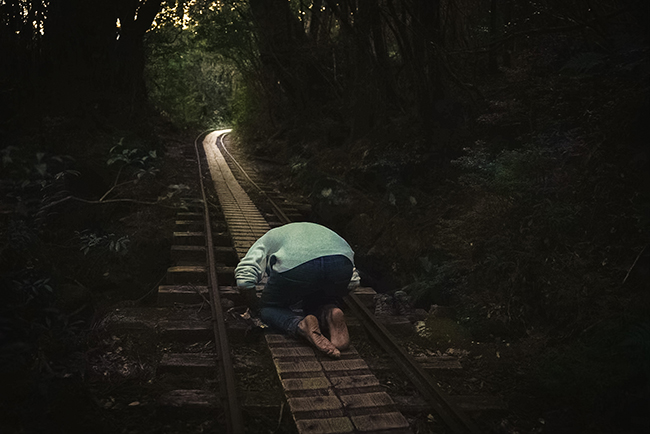 作者によると、この写真は屋久島でパレスチナ出身の友人が、お祈りを捧げているシーンを撮影したとのこと。かなり特殊な状況ですが、本作はそうした場所や背景は別にしても、単純に写真として目を引く作品になっていると感じます。鬱蒼として薄暗い森の中で、線路の先の明るく光が差す方向に向かってお祈りを捧げているという構図もバランスが良く、ドラマチックなシーンを引き立てています。画面の隅々まで見入ってしまう、魅力的な作品です。