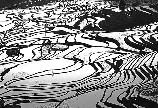 調子を硬くした状態の写真を和紙にプリントすることで、版画のような面白さを引き出した作品になっています。プリンターならではの表現で、写真の内容的にもマッチした表現です。写真はスケール感のある棚田の様子を写しており、絵画的でありながら適度なグラデーションが再現され、目を引きます。少し黄味のある和紙を使っているのも良いと思います。