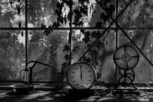 まず、作者の新しい表現に挑戦するという姿勢が素晴らしいと思いました。例えば、積み上げられたH鋼を捉えた写真や配線の飛び出た壁を撮影した写真などは、その造形の面白さを上手く捉えていますし、現代アート的な感覚が感じられます。窓際に時計が置かれた写真は、少し趣の異なるもののようですが、5枚のプリントにより「存在理由」という作意のアイデアで現代社会を表現しようとしており、作者のチャレンジ性を感じます。