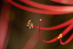 花に集まってきた小さな生命を捉えた作品で、体中に花粉を付けたハチ、バッタやクモ、カマキリなど、小さな生命の生きる世界を写真で忠実に表現していて、写真でなければできない生態記録になっています。虫たちの表情や動き、行動している背景の様子などが画面上にバランスよく配置されていることで、ストーリー性のある写真になっている点も効果的です。小さくても強い生命力が感じられ、私たちに力を与えてくれるような魅力的な作品です。また、構図や配色なども含め、技術的にも上手い作品です。
