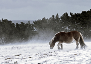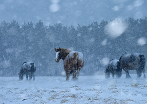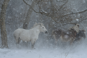雪と白い馬の情景により、ロマンティックな印象を受ける風景写真になっています。風景に白い馬を入れて描いた東山魁夷先生の作品にさえ、負けず劣らずと思える仕上がり。雪山の木の茂みにいる、しっとりとした馬の雰囲気は、自然と動物が上手く融合しており、素晴らしい情景です。日本の風景を叙情詩的に表現し素敵だと感じました。