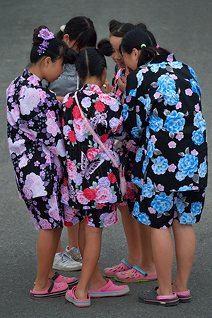 一見、同じようなシチュエーションで撮った記念写真のようにも見えますが、子どもたちの気持ちまで写し込まれた奥の深い作品です。例えば、少女たちが人形を背負っていたり、スマートフォンで電話をしていたりといった写真は、極々当たりまえの少女たちの姿を捉えています。しかし、その1枚1枚の写真からは、現代の少女たちの持つ物語が感じられます。つまり、情景描写に長けているのです。さりげなく少女たちの感性を写し込み、それを作者の狙いにかなった1つのストーリーに見せるのは素晴らしい技術力であり、1枚1枚見るとそれぞれに少女の心理まで捉えており感心させられます。